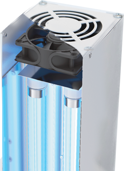 Обеззараживает воздух благодаря принудительной рециркуляции